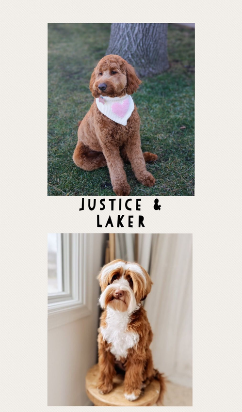 Justice is the sweetest dog, with a chill demeanor and a loving heart. Her intense red color and well-behaved nature make her a joy to be around. Laker is equally wonderful, being very affectionate, intelligent, and human-focused. Both dogs get along great with other dogs and children.